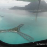 Après 15min de vol depuis Huahine, nous profitons d’une vue aérienne grandiose sur l’île de Bora Bora et son lagon.